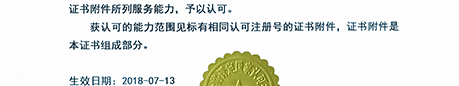 符合交通、安檢、食品、藥監、質檢等國家行政部門認可,根據《中華人民共和國計量法》的有關規定,符合企業ISO、CCC、UL、CE、QS、CQC、SATRA、CIQ、CSA、TUV、GMS、IEC17025、TS16949等國內外體系認證審核及客戶驗廠要求,實力強有保障。